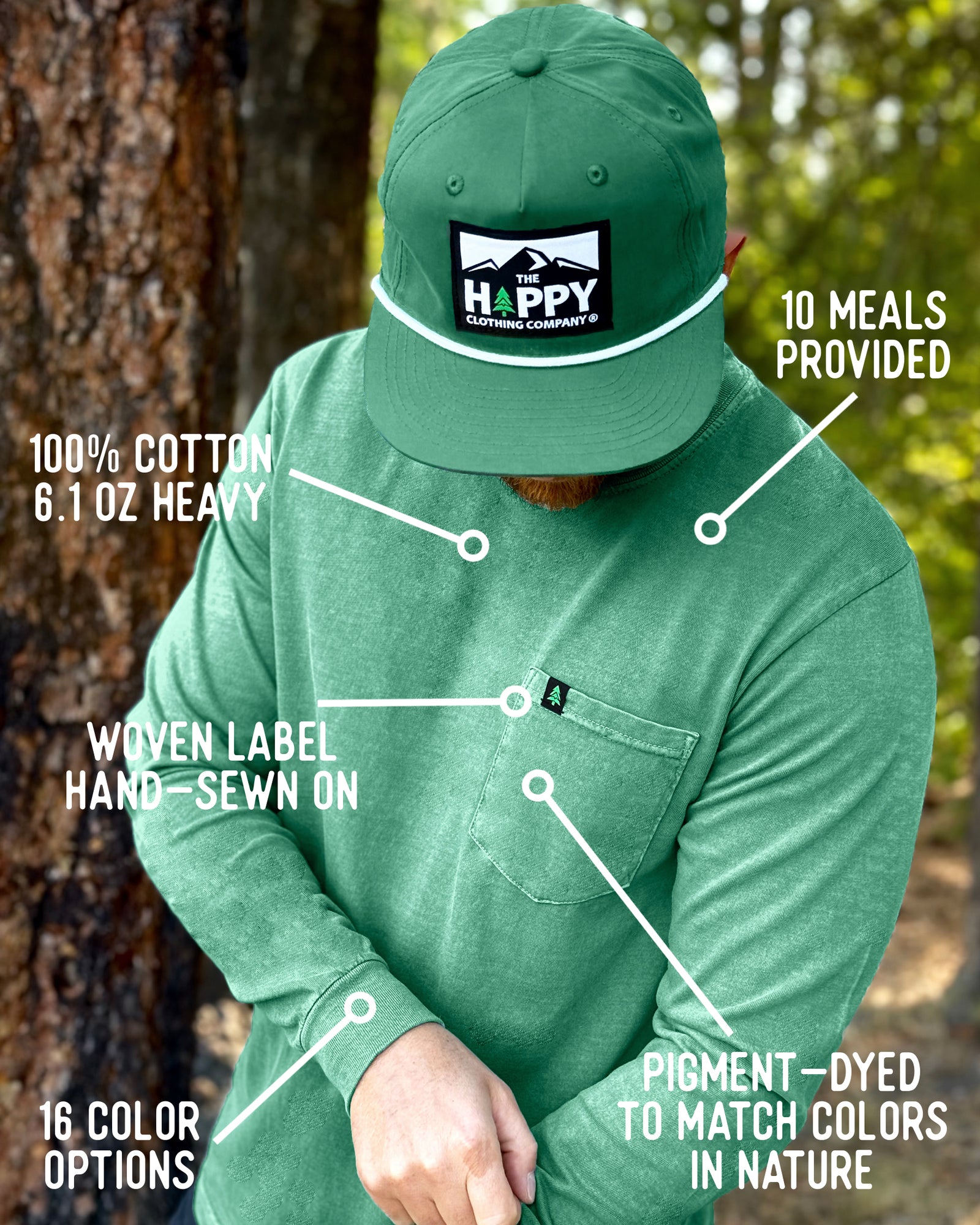 Our best selling shirt is a 100% Cotton tee, that's been pigment-dyed to match colors found in nature. It's the perfect basic to represent your love for nature wherever you go, from city streets to mountain peaks.