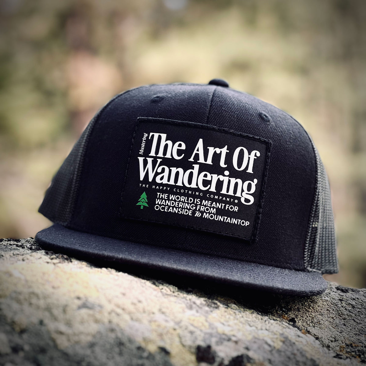 Mastering The Art Of Wandering, one trail at a time, from Oceanside To Mountaintop🌲🌲🌲 This printed patch hat is a 6-Panel high-profile snapback with an acrylic and wool front, a mesh back and an adjustable plastic closure.