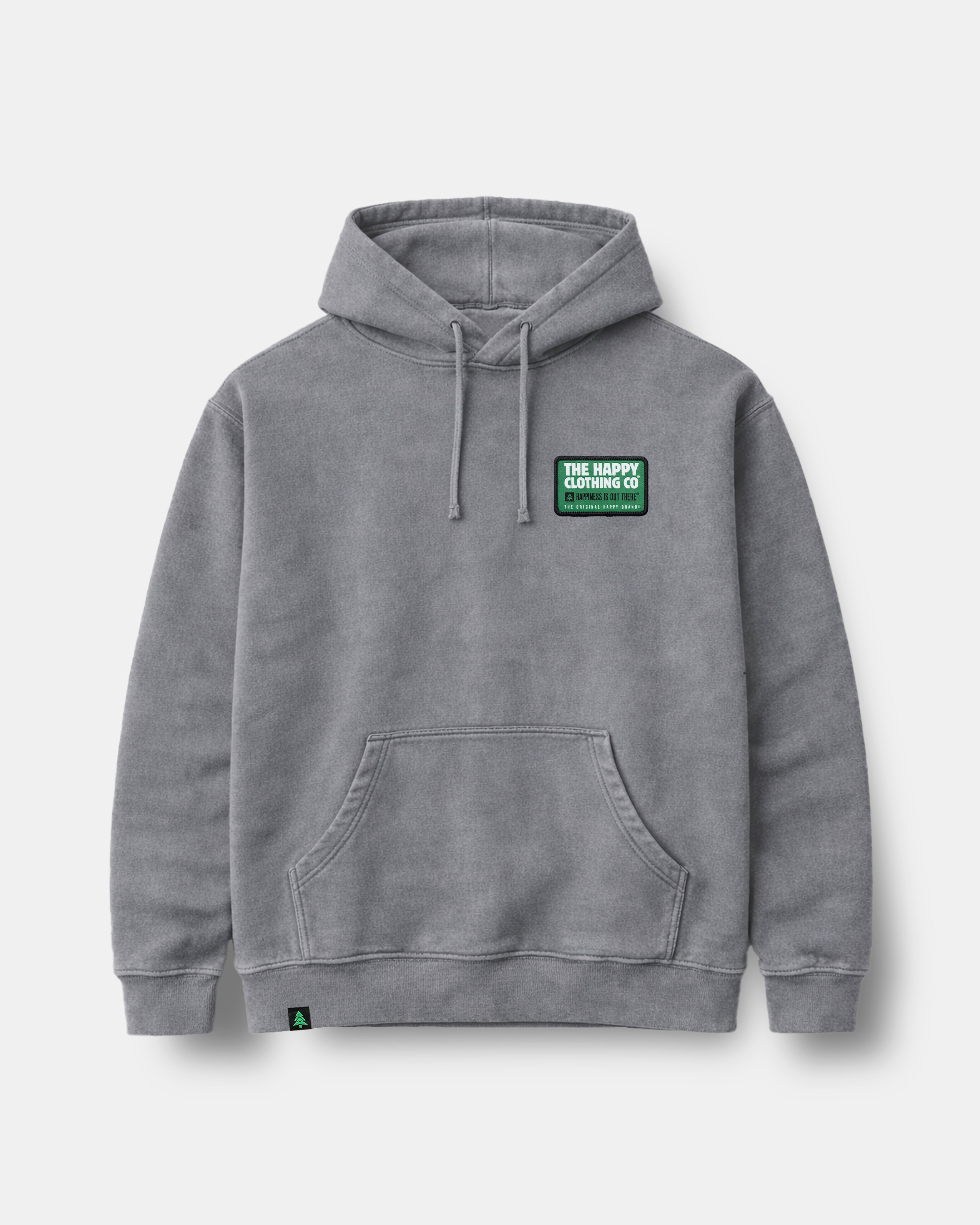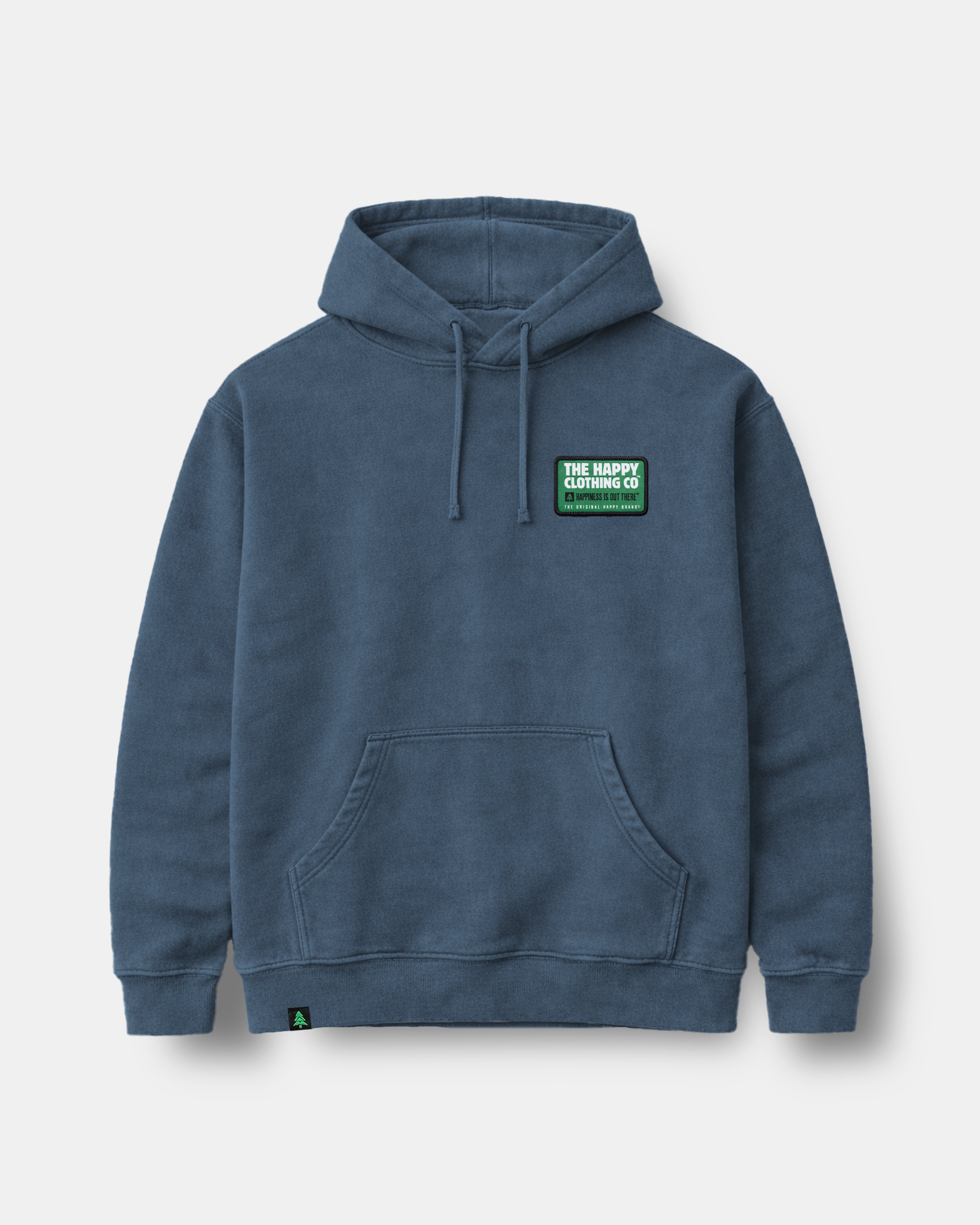 A pigment-dyed hoodie to match colors found in nature🌲 Hand sewn onto the left chest is our new vintage-inspired woven patch. It reads "The Happy Clothing Co. Happiness Is Out There. The Original Happy Brand."